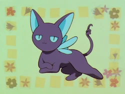In his borrowed form, he looks like a small, black cat with butterfly-like turquoise wings, ears and eyes. He also has a tail that ends in a spiral.